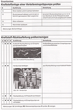- Fehlersuche und Fehlerbehebung: - Motor - Schmieranlage - Kühlanlage - Einspritzanlage - Vorglühanlage - Starteranlage - Kraftübertragung - Bremsen - Beleuchtungsanlage - Signalanlage - Instrumentierung - Bordnetz - Hydraulik; Wartung: Motor - Schmieranlage - Kühlanlage - Einspritzanlage - Hydraulikanlage - Kraftübertragung - Fahrwerk - Bremsanlage - Druckluftanlage - Elektrik - Beleuchtungsanlage - Wischeranlage