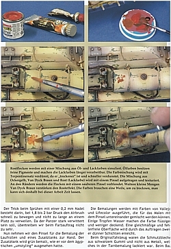 Heft 2.Dieser Band konzentriert sich auf den Hauptdarsteller unserer Hobby-Welt: den Modellbauer. Das mag paradox erscheinen, ist es aber nicht. Lassen Sie uns herausfinden warum: Vier Modelle werden in diesem Band der Modellbau-Techniken vorgestellt: drei im Maßstab 1:35 und eines in 1:72. Alle vier besitzen ein stark gealtertes Aussehen. Sowohl durch Schlächten wie auch das Wetter hervorgerufen-zeigen sie Kratzer, Beschädigungen, Flecken und Schlieren. Es besteht kein großer Unterschied zwischen einzelnen Fahrzeugtypen und sowohl Bemalung und Alterung erfolgen mehr oder weniger mit den gleichen Materialien: Grundierungen, Grundfarben, Acrylfarben, Ölfarben, Verdünner, Pigmente, Stifte ... Auch die einzelnen Arbeitsschritte sind im Grunde die gleichen: eine Schicht Farbe über der Grundierung, Verblenden der Farben für größte Farbtiefe gefolgt von Washes und Trockenmalen. Schließlich folgen noch Pigmente und Stifte. Das sollte eigentlich das ganze Geheimnis sein! Nun ja, ist es aber nicht, da sich die Ergebnisse doch sehr deutlich voneinander unterscheiden! Dies stellt den Schlüssel zu dem vorliegenden Band der Modellbau-Techniken dar. Ein persönlicher "Touch" ist es, der jedes Modell einzigartig, interessant und zu einem Blickfang macht. Dieser "Touch" ist es auch, der entscheidend für die Weiterentwicklung unseres Hobbys ist.